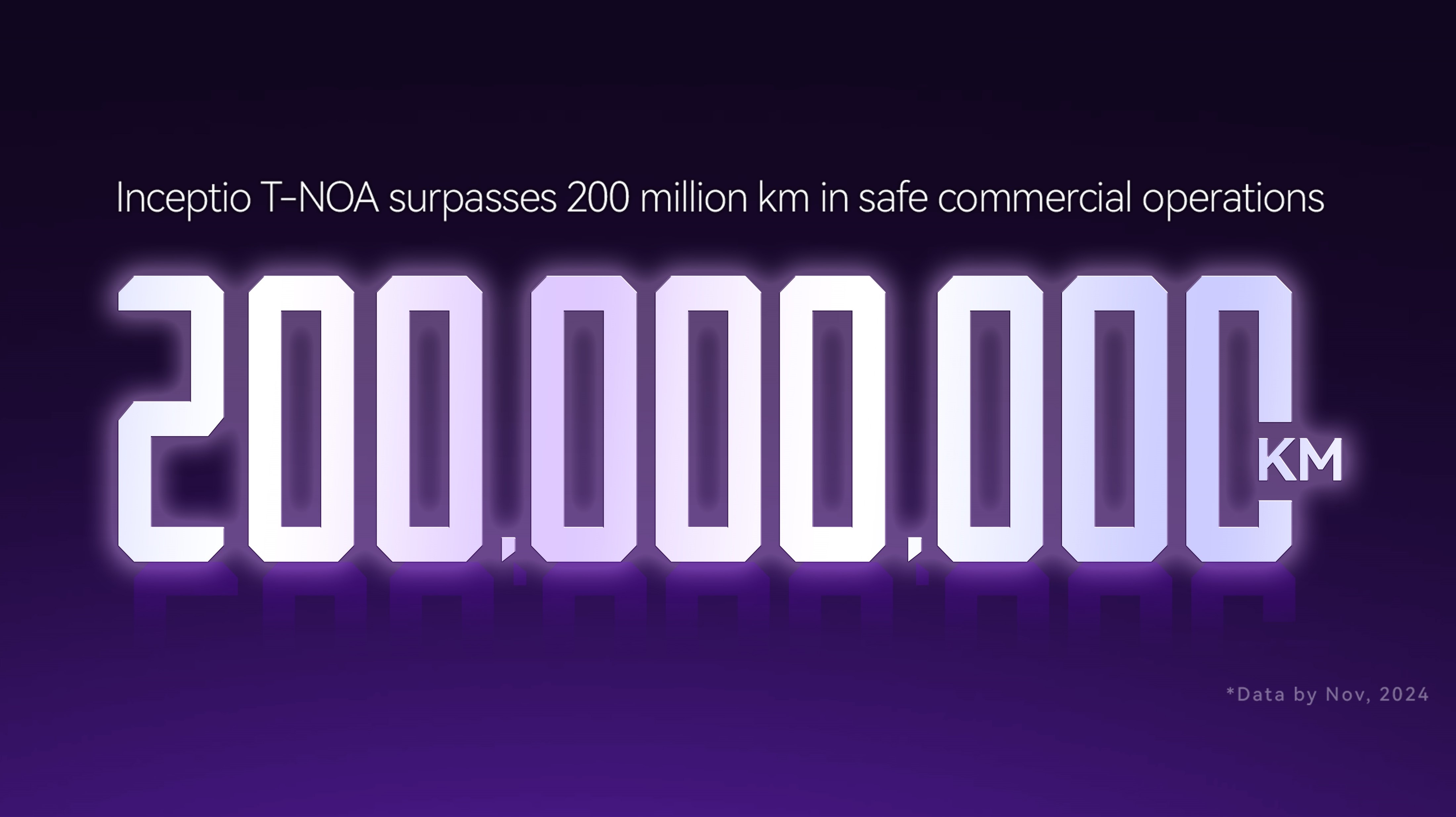 Inceptio Technology ("Inceptio" or the “Company”), an industry leading developer of autonomous driving technologies for heavy-duty trucks, announced today that its autonomous trucks have surpassed 200 million kilometers in commercial operations. This achievement sets a new benchmark within the sector and doubles the 100-million-kilometer milestone reached at the end of April 2024.